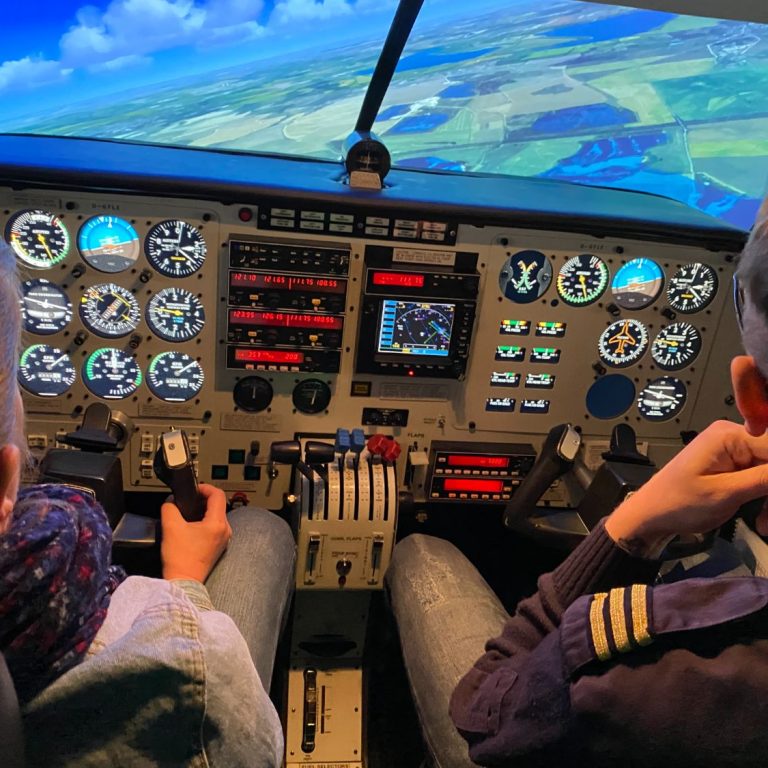 In unserem Piper Motion Simulator lernst du die absoluten Basics kennen. Die Motion Plattform und das Soundsystem, sowie die Seitensichten auf die beiden Propeller-Motoren verleihen dir ganz schnell das Gefühl tatsächlich zu fliegen.